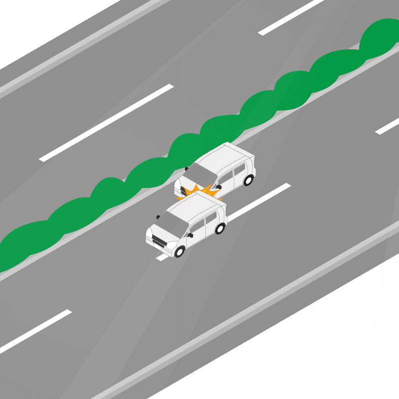 ・イラストに使用している各要素(車、背景、車、天候、信号、衝突地点など)は、代表的なイメージをイラスト化しており、色や形状等含め現実の事故の状況とは異なります。あくまで、事故のイメージとして参考までにご活用ください。