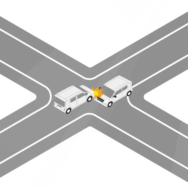 ・イラストに使用している各要素(車、背景、車、天候、信号、衝突地点など)は、代表的なイメージをイラスト化しており、色や形状等含め現実の事故の状況とは異なります。あくまで、事故のイメージとして参考までにご活用ください。