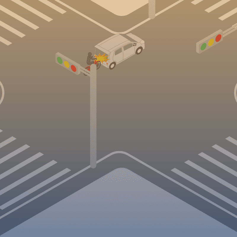 ・イラストに使用している各要素(車、背景、車、天候、信号、衝突地点など)は、代表的なイメージをイラスト化しており、色や形状等含め現実の事故の状況とは異なります。あくまで、事故のイメージとして参考までにご活用ください。