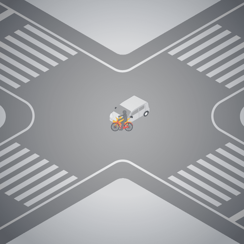 ・イラストに使用している各要素(車、背景、車、天候、信号、衝突地点など)は、代表的なイメージをイラスト化しており、色や形状等含め現実の事故の状況とは異なります。あくまで、事故のイメージとして参考までにご活用ください。