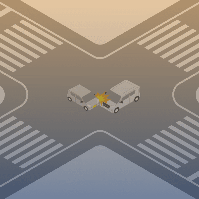 ・イラストに使用している各要素(車、背景、車、天候、信号、衝突地点など)は、代表的なイメージをイラスト化しており、色や形状等含め現実の事故の状況とは異なります。あくまで、事故のイメージとして参考までにご活用ください。