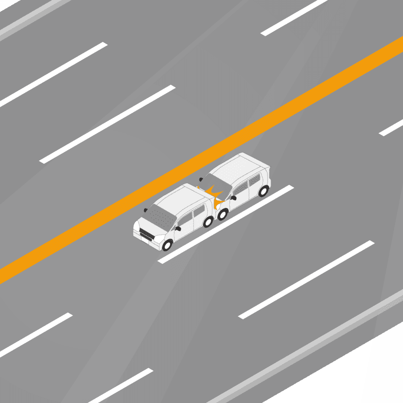 ・イラストに使用している各要素(車、背景、車、天候、信号、衝突地点など)は、代表的なイメージをイラスト化しており、色や形状等含め現実の事故の状況とは異なります。あくまで、事故のイメージとして参考までにご活用ください。