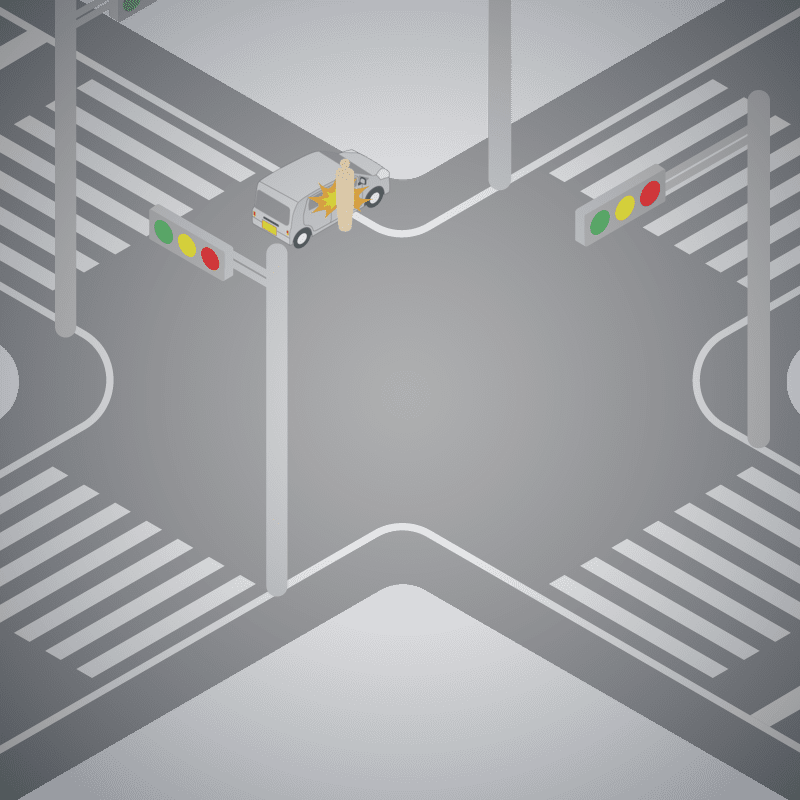 ・イラストに使用している各要素(車、背景、車、天候、信号、衝突地点など)は、代表的なイメージをイラスト化しており、色や形状等含め現実の事故の状況とは異なります。あくまで、事故のイメージとして参考までにご活用ください。