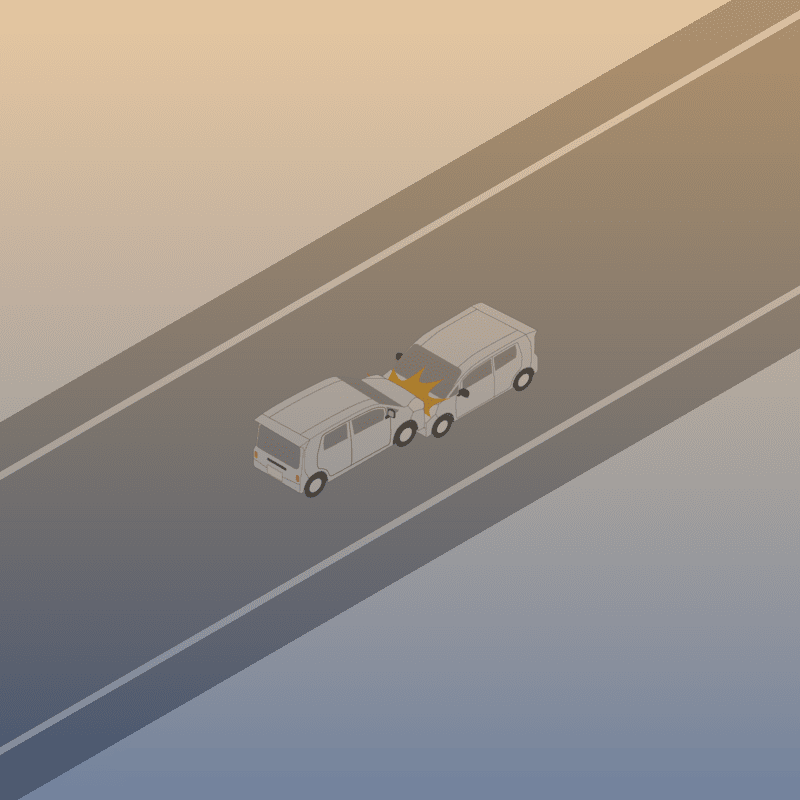 ・イラストに使用している各要素(車、背景、車、天候、信号、衝突地点など)は、代表的なイメージをイラスト化しており、色や形状等含め現実の事故の状況とは異なります。あくまで、事故のイメージとして参考までにご活用ください。