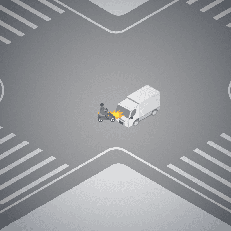 ・イラストに使用している各要素(車、背景、車、天候、信号、衝突地点など)は、代表的なイメージをイラスト化しており、色や形状等含め現実の事故の状況とは異なります。あくまで、事故のイメージとして参考までにご活用ください。
