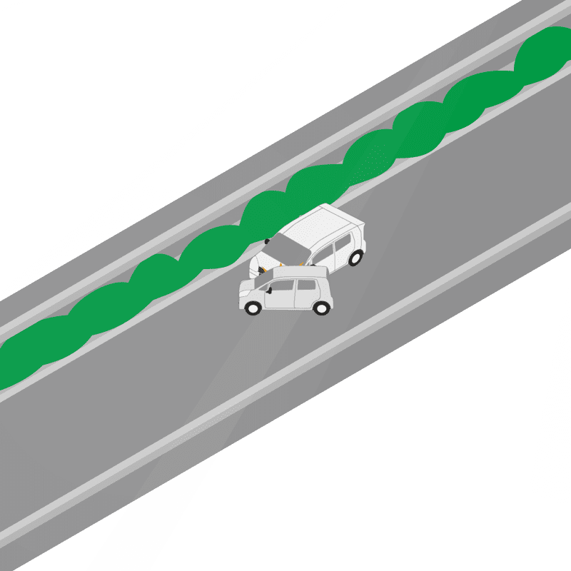 ・イラストに使用している各要素(車、背景、車、天候、信号、衝突地点など)は、代表的なイメージをイラスト化しており、色や形状等含め現実の事故の状況とは異なります。あくまで、事故のイメージとして参考までにご活用ください。