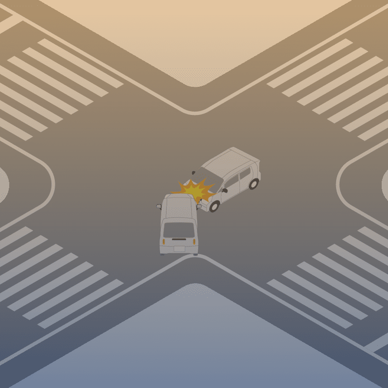 ・イラストに使用している各要素(車、背景、車、天候、信号、衝突地点など)は、代表的なイメージをイラスト化しており、色や形状等含め現実の事故の状況とは異なります。あくまで、事故のイメージとして参考までにご活用ください。
