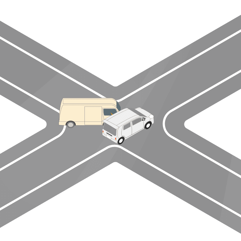 ・イラストに使用している各要素(車、背景、車、天候、信号、衝突地点など)は、代表的なイメージをイラスト化しており、色や形状等含め現実の事故の状況とは異なります。あくまで、事故のイメージとして参考までにご活用ください。