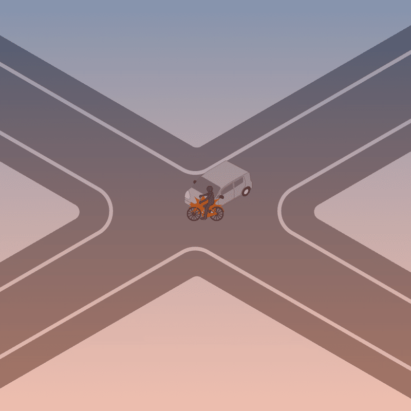 ・イラストに使用している各要素(車、背景、車、天候、信号、衝突地点など)は、代表的なイメージをイラスト化しており、色や形状等含め現実の事故の状況とは異なります。あくまで、事故のイメージとして参考までにご活用ください。