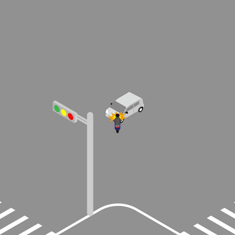 ・イラストに使用している各要素(車、背景、車、天候、信号、衝突地点など)は、代表的なイメージをイラスト化しており、色や形状等含め現実の事故の状況とは異なります。あくまで、事故のイメージとして参考までにご活用ください。