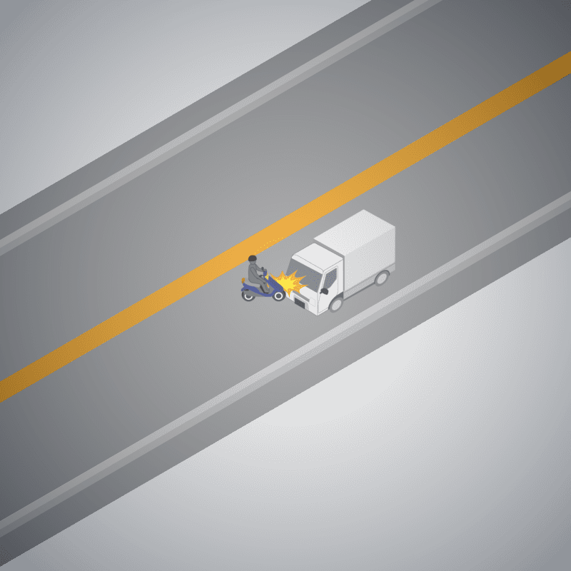 ・イラストに使用している各要素(車、背景、車、天候、信号、衝突地点など)は、代表的なイメージをイラスト化しており、色や形状等含め現実の事故の状況とは異なります。あくまで、事故のイメージとして参考までにご活用ください。