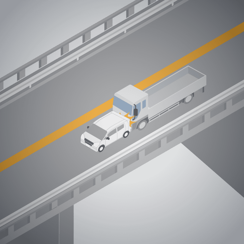 ・イラストに使用している各要素(車、背景、車、天候、信号、衝突地点など)は、代表的なイメージをイラスト化しており、色や形状等含め現実の事故の状況とは異なります。あくまで、事故のイメージとして参考までにご活用ください。