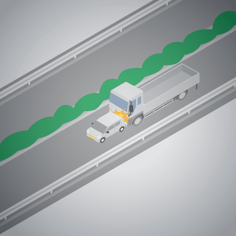 ・イラストに使用している各要素(車、背景、車、天候、信号、衝突地点など)は、代表的なイメージをイラスト化しており、色や形状等含め現実の事故の状況とは異なります。あくまで、事故のイメージとして参考までにご活用ください。