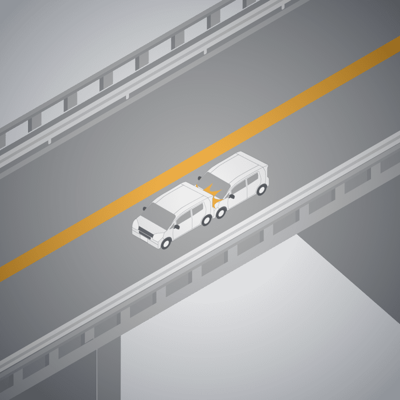 ・イラストに使用している各要素(車、背景、車、天候、信号、衝突地点など)は、代表的なイメージをイラスト化しており、色や形状等含め現実の事故の状況とは異なります。あくまで、事故のイメージとして参考までにご活用ください。
