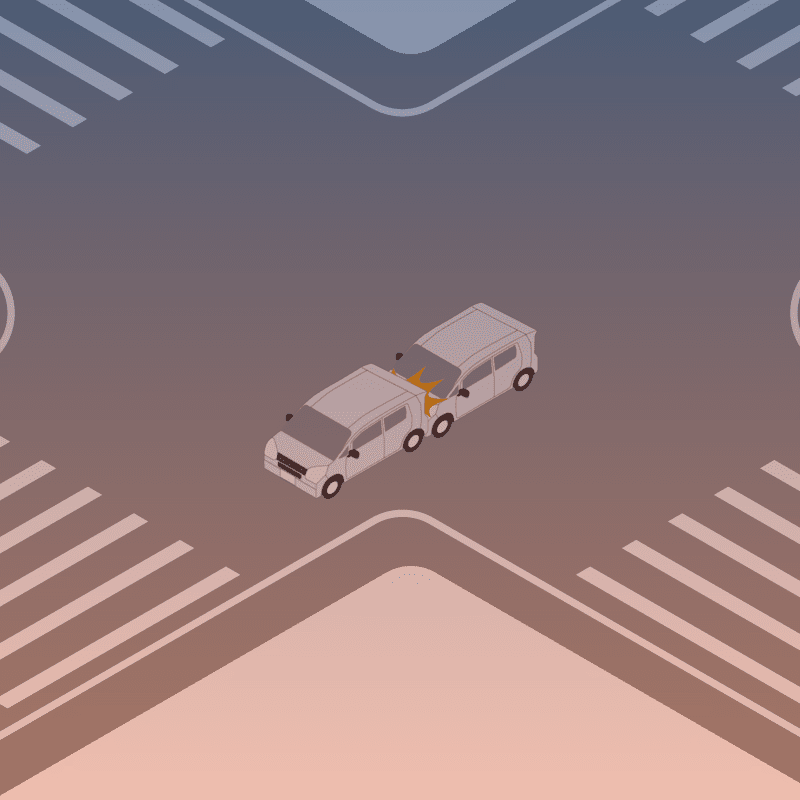 ・イラストに使用している各要素(車、背景、車、天候、信号、衝突地点など)は、代表的なイメージをイラスト化しており、色や形状等含め現実の事故の状況とは異なります。あくまで、事故のイメージとして参考までにご活用ください。