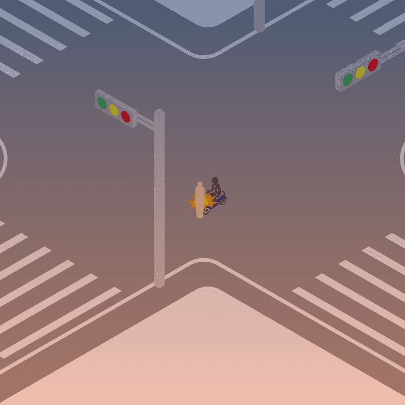 ・イラストに使用している各要素(車、背景、車、天候、信号、衝突地点など)は、代表的なイメージをイラスト化しており、色や形状等含め現実の事故の状況とは異なります。あくまで、事故のイメージとして参考までにご活用ください。