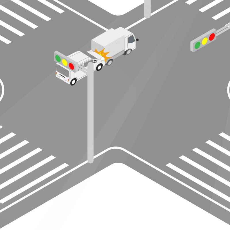 ・イラストに使用している各要素(車、背景、車、天候、信号、衝突地点など)は、代表的なイメージをイラスト化しており、色や形状等含め現実の事故の状況とは異なります。あくまで、事故のイメージとして参考までにご活用ください。