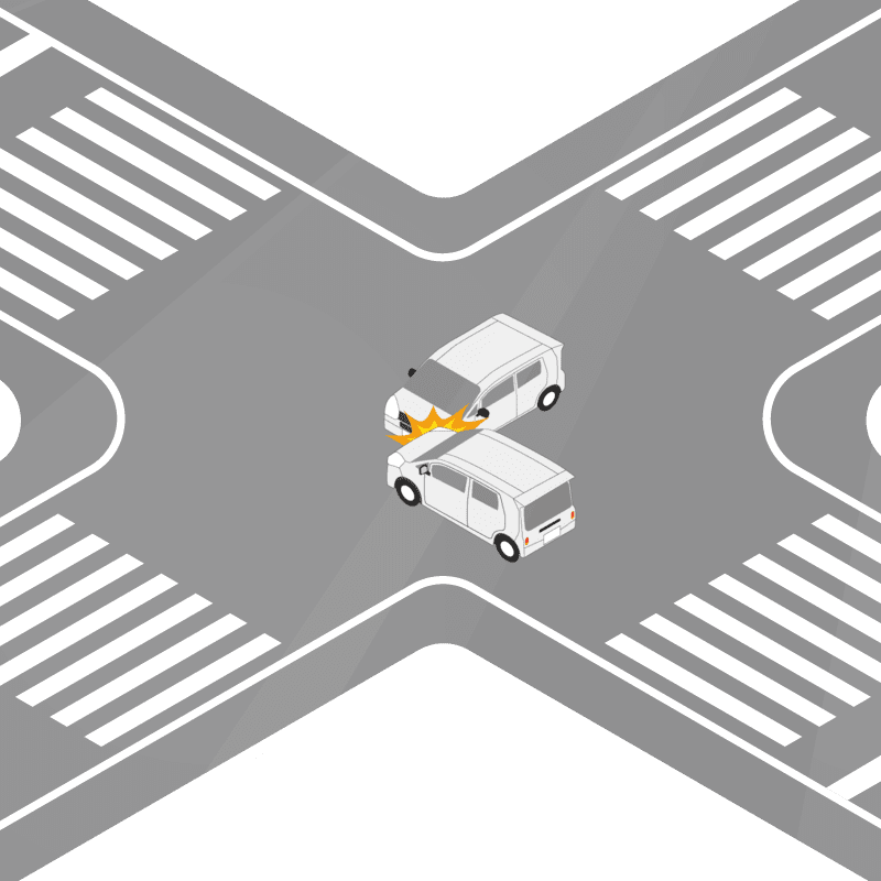 ・イラストに使用している各要素(車、背景、車、天候、信号、衝突地点など)は、代表的なイメージをイラスト化しており、色や形状等含め現実の事故の状況とは異なります。あくまで、事故のイメージとして参考までにご活用ください。