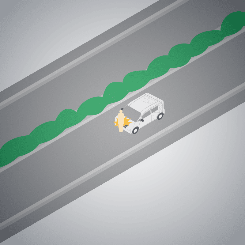・イラストに使用している各要素(車、背景、車、天候、信号、衝突地点など)は、代表的なイメージをイラスト化しており、色や形状等含め現実の事故の状況とは異なります。あくまで、事故のイメージとして参考までにご活用ください。