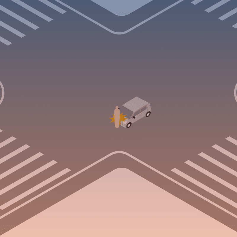 ・イラストに使用している各要素(車、背景、車、天候、信号、衝突地点など)は、代表的なイメージをイラスト化しており、色や形状等含め現実の事故の状況とは異なります。あくまで、事故のイメージとして参考までにご活用ください。