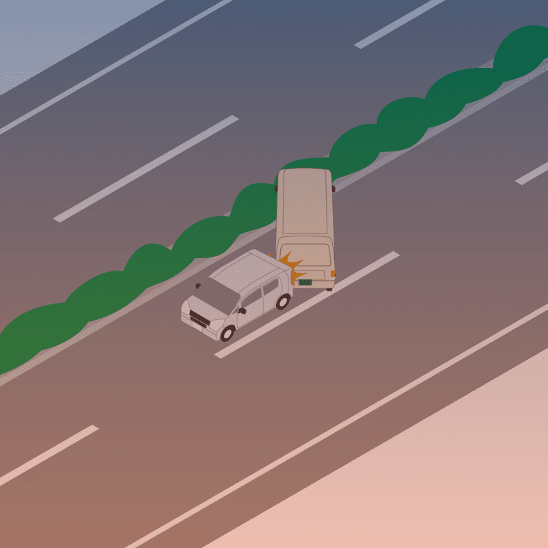・イラストに使用している各要素(車、背景、車、天候、信号、衝突地点など)は、代表的なイメージをイラスト化しており、色や形状等含め現実の事故の状況とは異なります。あくまで、事故のイメージとして参考までにご活用ください。
