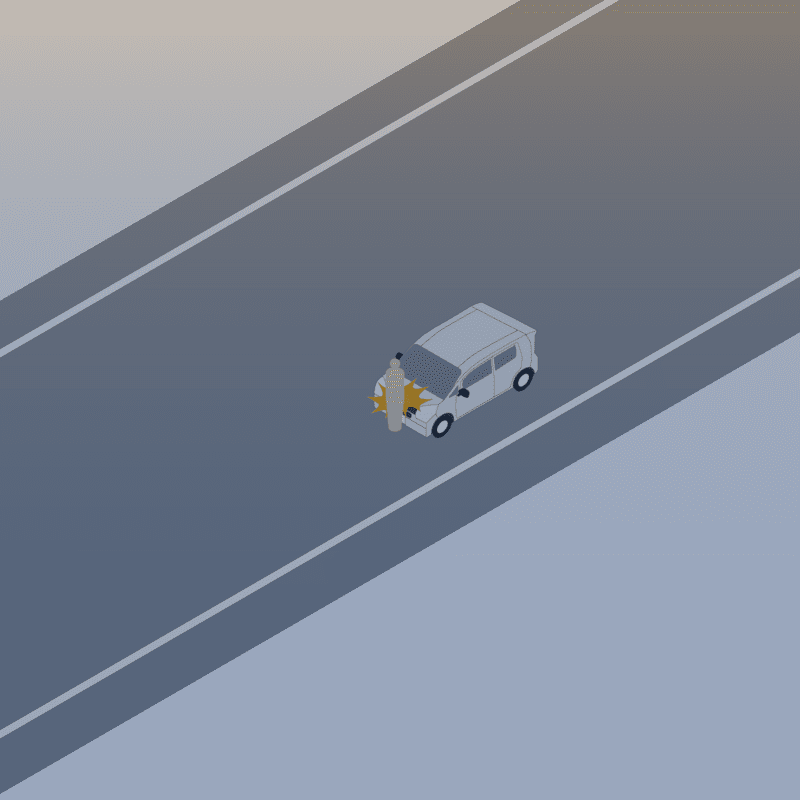 ・イラストに使用している各要素(車、背景、車、天候、信号、衝突地点など)は、代表的なイメージをイラスト化しており、色や形状等含め現実の事故の状況とは異なります。あくまで、事故のイメージとして参考までにご活用ください。