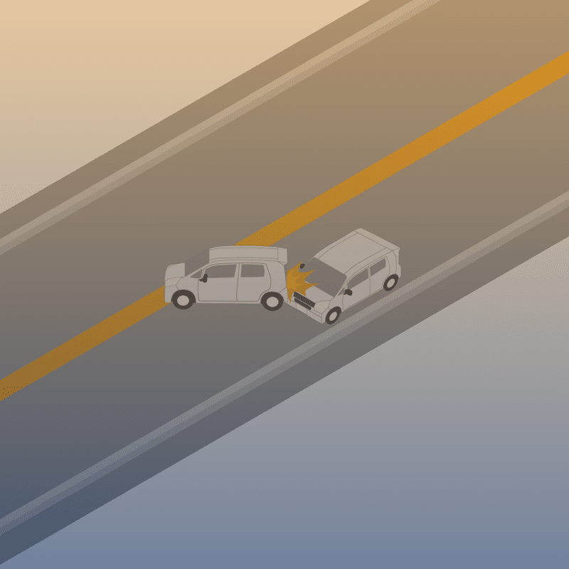 ・イラストに使用している各要素(車、背景、車、天候、信号、衝突地点など)は、代表的なイメージをイラスト化しており、色や形状等含め現実の事故の状況とは異なります。あくまで、事故のイメージとして参考までにご活用ください。