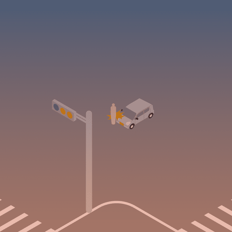 ・イラストに使用している各要素(車、背景、車、天候、信号、衝突地点など)は、代表的なイメージをイラスト化しており、色や形状等含め現実の事故の状況とは異なります。あくまで、事故のイメージとして参考までにご活用ください。