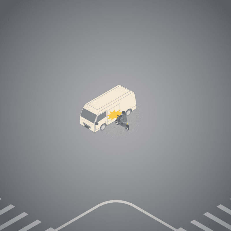 ・イラストに使用している各要素(車、背景、車、天候、信号、衝突地点など)は、代表的なイメージをイラスト化しており、色や形状等含め現実の事故の状況とは異なります。あくまで、事故のイメージとして参考までにご活用ください。