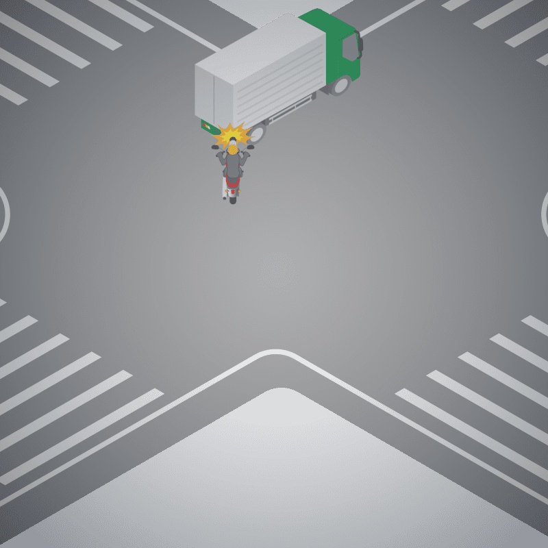 ・イラストに使用している各要素(車、背景、車、天候、信号、衝突地点など)は、代表的なイメージをイラスト化しており、色や形状等含め現実の事故の状況とは異なります。あくまで、事故のイメージとして参考までにご活用ください。