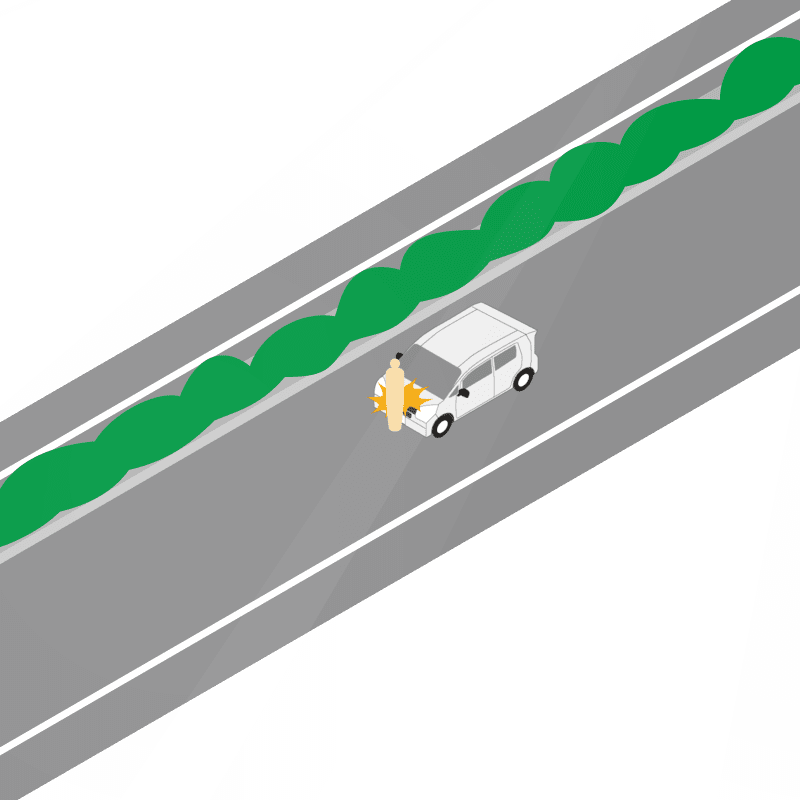 ・イラストに使用している各要素(車、背景、車、天候、信号、衝突地点など)は、代表的なイメージをイラスト化しており、色や形状等含め現実の事故の状況とは異なります。あくまで、事故のイメージとして参考までにご活用ください。