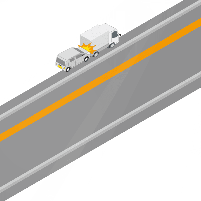 ・イラストに使用している各要素(車、背景、車、天候、信号、衝突地点など)は、代表的なイメージをイラスト化しており、色や形状等含め現実の事故の状況とは異なります。あくまで、事故のイメージとして参考までにご活用ください。