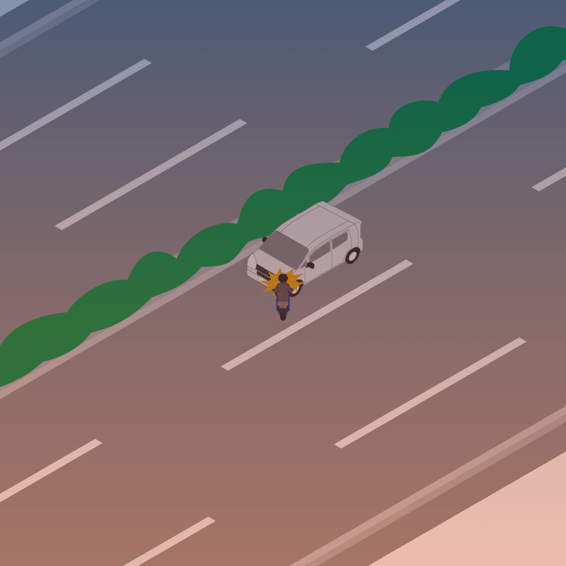 ・イラストに使用している各要素(車、背景、車、天候、信号、衝突地点など)は、代表的なイメージをイラスト化しており、色や形状等含め現実の事故の状況とは異なります。あくまで、事故のイメージとして参考までにご活用ください。