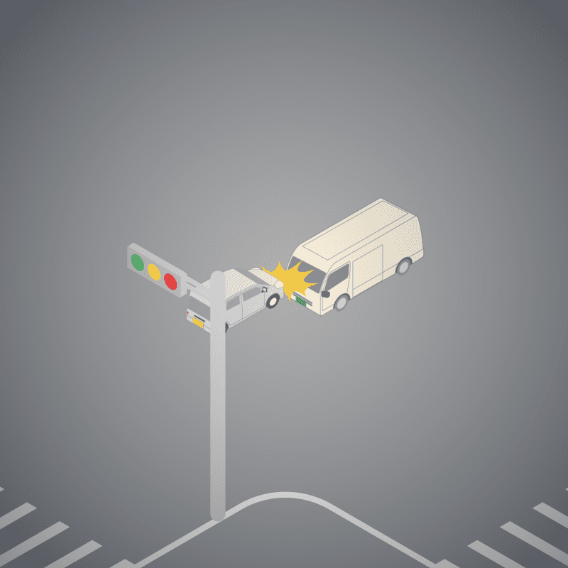 ・イラストに使用している各要素(車、背景、車、天候、信号、衝突地点など)は、代表的なイメージをイラスト化しており、色や形状等含め現実の事故の状況とは異なります。あくまで、事故のイメージとして参考までにご活用ください。