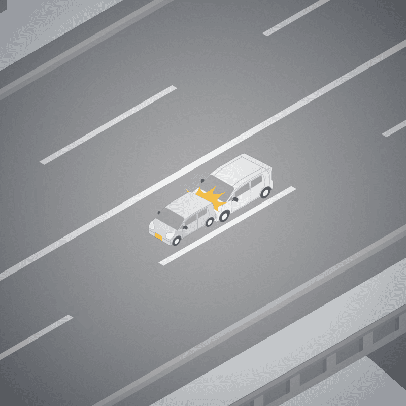 ・イラストに使用している各要素(車、背景、車、天候、信号、衝突地点など)は、代表的なイメージをイラスト化しており、色や形状等含め現実の事故の状況とは異なります。あくまで、事故のイメージとして参考までにご活用ください。