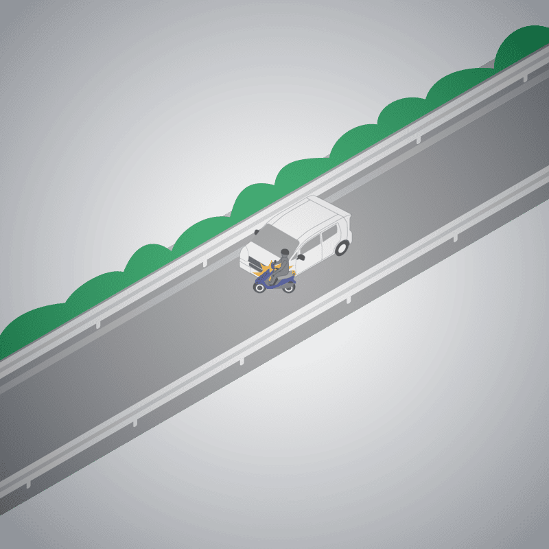 ・イラストに使用している各要素(車、背景、車、天候、信号、衝突地点など)は、代表的なイメージをイラスト化しており、色や形状等含め現実の事故の状況とは異なります。あくまで、事故のイメージとして参考までにご活用ください。