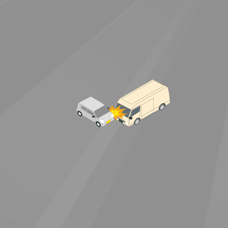 ・イラストに使用している各要素(車、背景、車、天候、信号、衝突地点など)は、代表的なイメージをイラスト化しており、色や形状等含め現実の事故の状況とは異なります。あくまで、事故のイメージとして参考までにご活用ください。