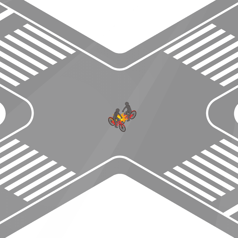・イラストに使用している各要素(車、背景、車、天候、信号、衝突地点など)は、代表的なイメージをイラスト化しており、色や形状等含め現実の事故の状況とは異なります。あくまで、事故のイメージとして参考までにご活用ください。