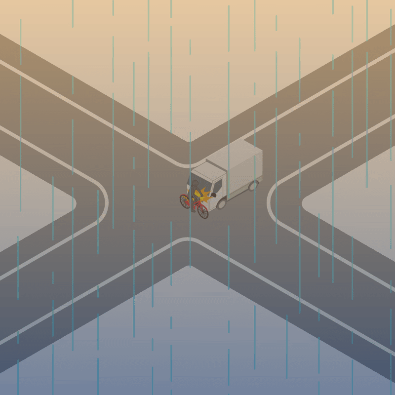 ・イラストに使用している各要素(車、背景、車、天候、信号、衝突地点など)は、代表的なイメージをイラスト化しており、色や形状等含め現実の事故の状況とは異なります。あくまで、事故のイメージとして参考までにご活用ください。