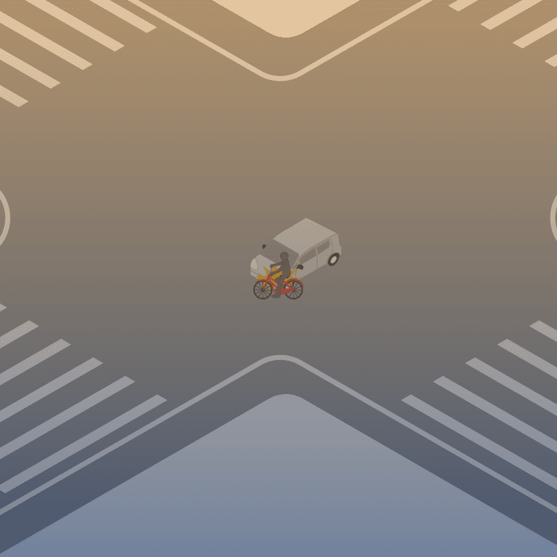 ・イラストに使用している各要素(車、背景、車、天候、信号、衝突地点など)は、代表的なイメージをイラスト化しており、色や形状等含め現実の事故の状況とは異なります。あくまで、事故のイメージとして参考までにご活用ください。