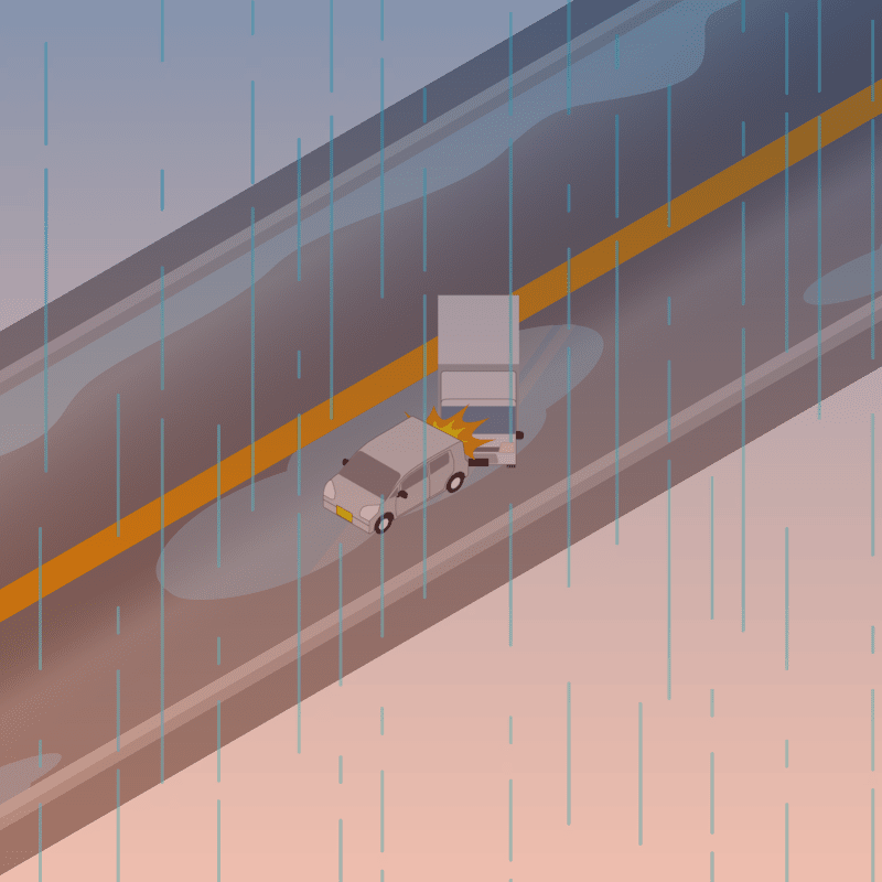 ・イラストに使用している各要素(車、背景、車、天候、信号、衝突地点など)は、代表的なイメージをイラスト化しており、色や形状等含め現実の事故の状況とは異なります。あくまで、事故のイメージとして参考までにご活用ください。