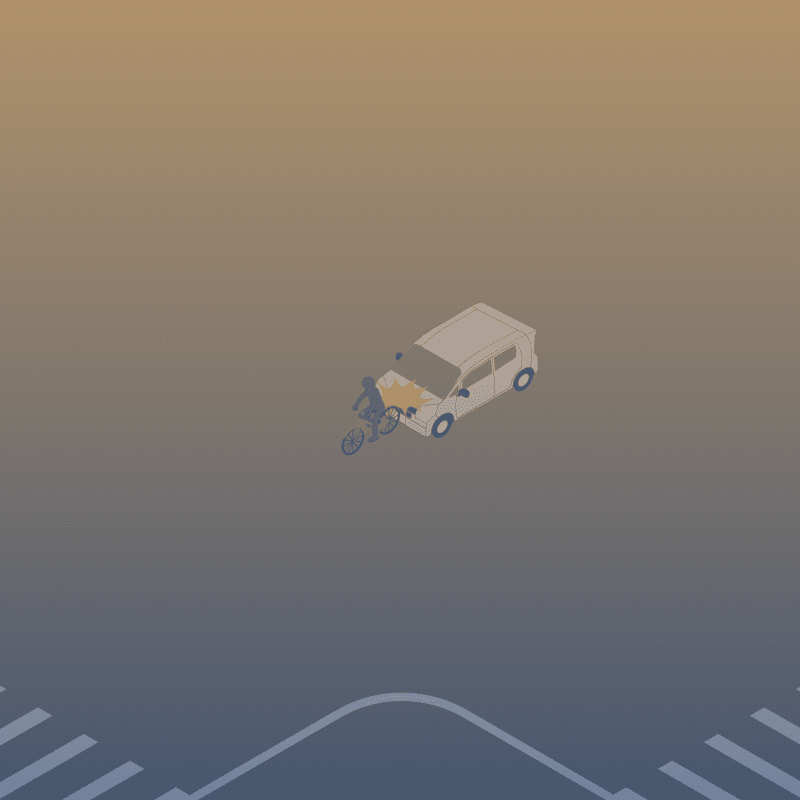 ・イラストに使用している各要素(車、背景、車、天候、信号、衝突地点など)は、代表的なイメージをイラスト化しており、色や形状等含め現実の事故の状況とは異なります。あくまで、事故のイメージとして参考までにご活用ください。