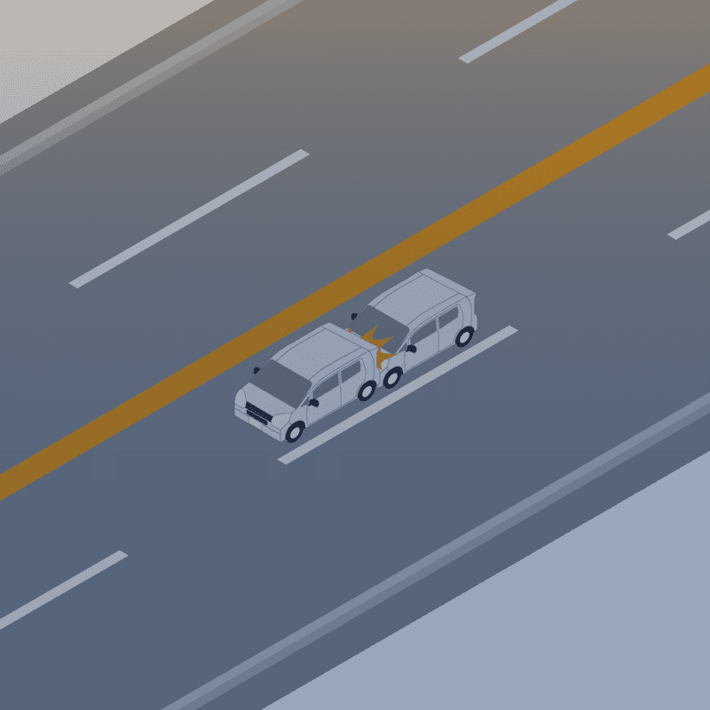 ・イラストに使用している各要素(車、背景、車、天候、信号、衝突地点など)は、代表的なイメージをイラスト化しており、色や形状等含め現実の事故の状況とは異なります。あくまで、事故のイメージとして参考までにご活用ください。