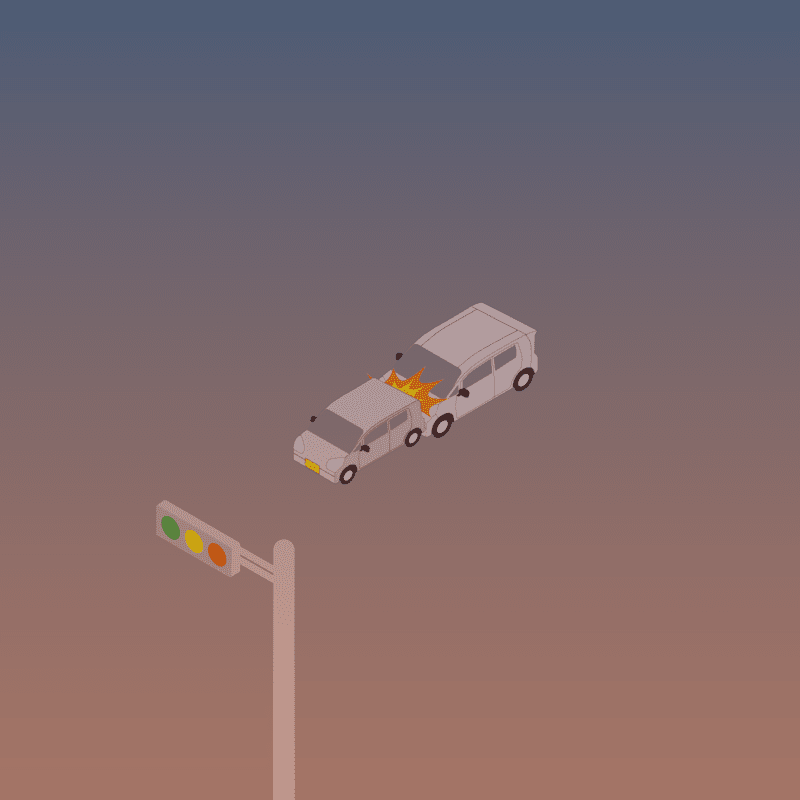 ・イラストに使用している各要素(車、背景、車、天候、信号、衝突地点など)は、代表的なイメージをイラスト化しており、色や形状等含め現実の事故の状況とは異なります。あくまで、事故のイメージとして参考までにご活用ください。
