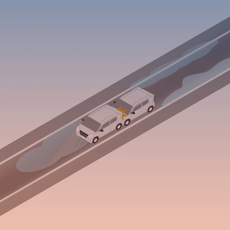 ・イラストに使用している各要素(車、背景、車、天候、信号、衝突地点など)は、代表的なイメージをイラスト化しており、色や形状等含め現実の事故の状況とは異なります。あくまで、事故のイメージとして参考までにご活用ください。