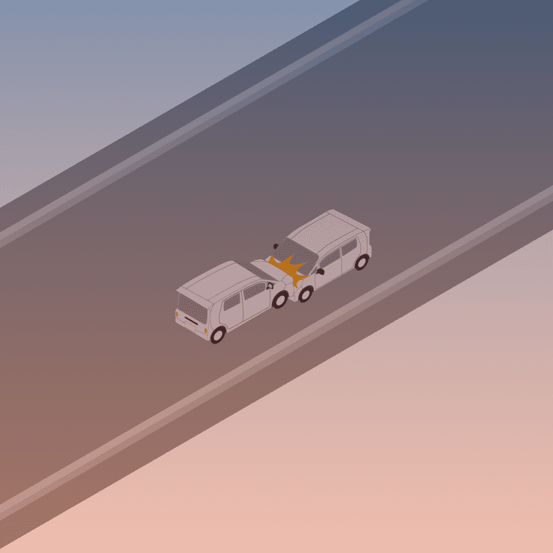 ・イラストに使用している各要素(車、背景、車、天候、信号、衝突地点など)は、代表的なイメージをイラスト化しており、色や形状等含め現実の事故の状況とは異なります。あくまで、事故のイメージとして参考までにご活用ください。