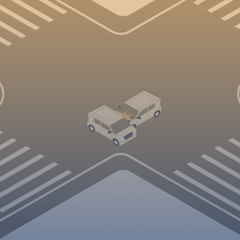 ・イラストに使用している各要素(車、背景、車、天候、信号、衝突地点など)は、代表的なイメージをイラスト化しており、色や形状等含め現実の事故の状況とは異なります。あくまで、事故のイメージとして参考までにご活用ください。