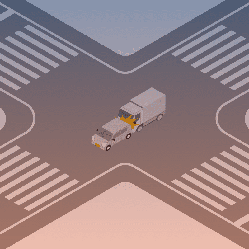 ・イラストに使用している各要素(車、背景、車、天候、信号、衝突地点など)は、代表的なイメージをイラスト化しており、色や形状等含め現実の事故の状況とは異なります。あくまで、事故のイメージとして参考までにご活用ください。