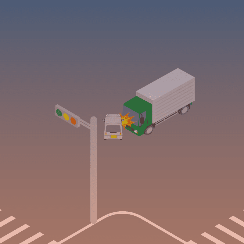 ・イラストに使用している各要素(車、背景、車、天候、信号、衝突地点など)は、代表的なイメージをイラスト化しており、色や形状等含め現実の事故の状況とは異なります。あくまで、事故のイメージとして参考までにご活用ください。
