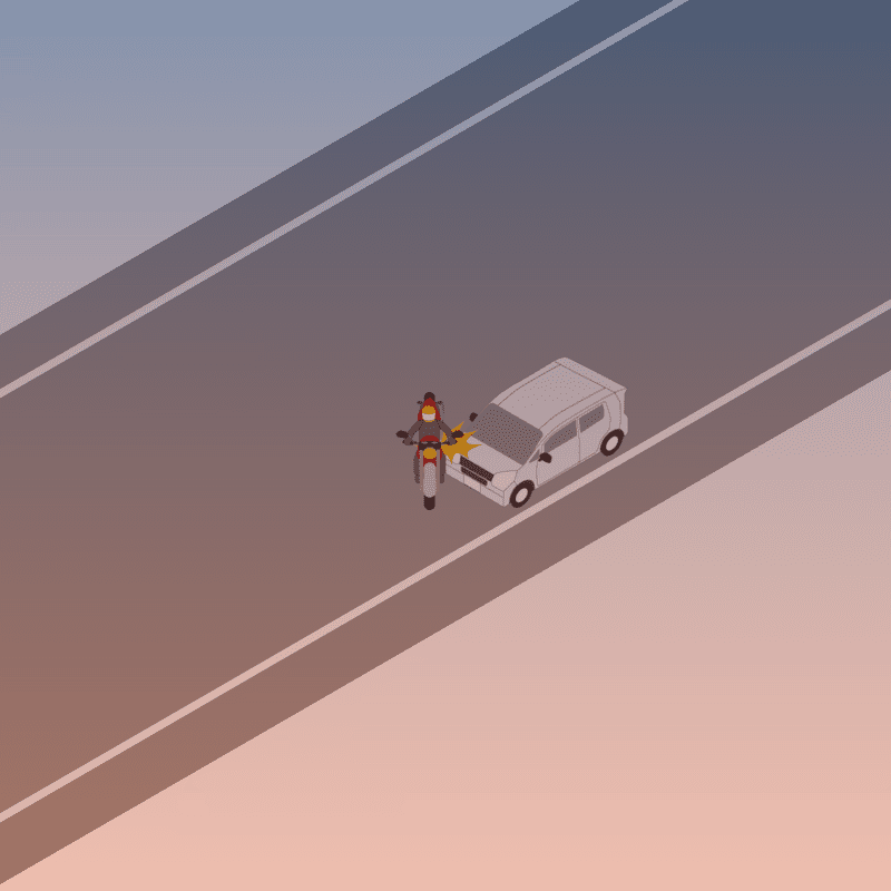 ・イラストに使用している各要素(車、背景、車、天候、信号、衝突地点など)は、代表的なイメージをイラスト化しており、色や形状等含め現実の事故の状況とは異なります。あくまで、事故のイメージとして参考までにご活用ください。